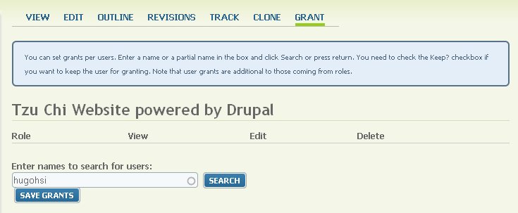 When clicking into "GRANT", users will see another screen which allows to enter user-id for various permission.